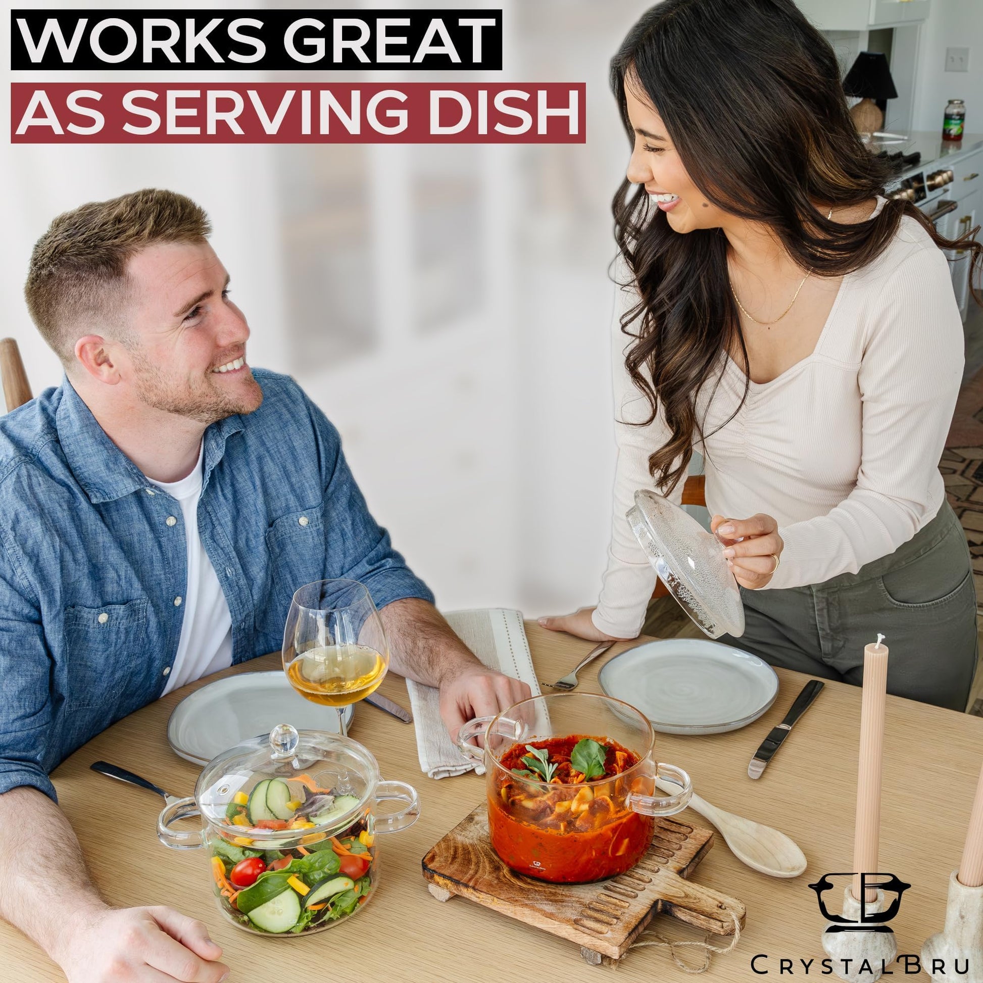 • ✅Versatile 2L (67 Oz) Glass Cooking Pot for All Your Needs: This 2-liter (67-ounce) borosilicate glass pot is perfect for making pasta, soup, stew, tea, baby food, and warm aromatics. Our heat-resistant glass pot with anti-scald handles is a true kitchen multitasker, ideal as a glass cooking pot and pasta pot.