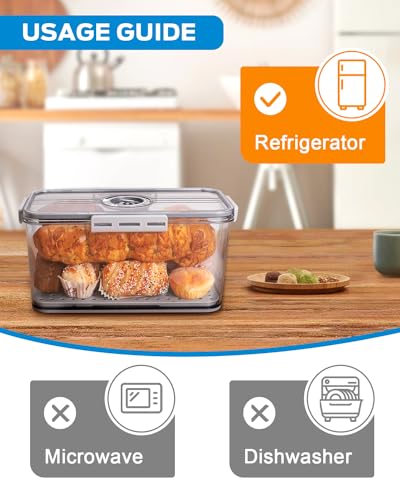 - Great Airtightness: These bread boxes have high-quality silicone sealing rings on the top and lid. Simply close the 4 buckles on the lid to provide high-quality sealing and ensure your bread is fresh and delicious. The lid is also equipped with an air valve, which you can adjust up and down to achieve air circulation