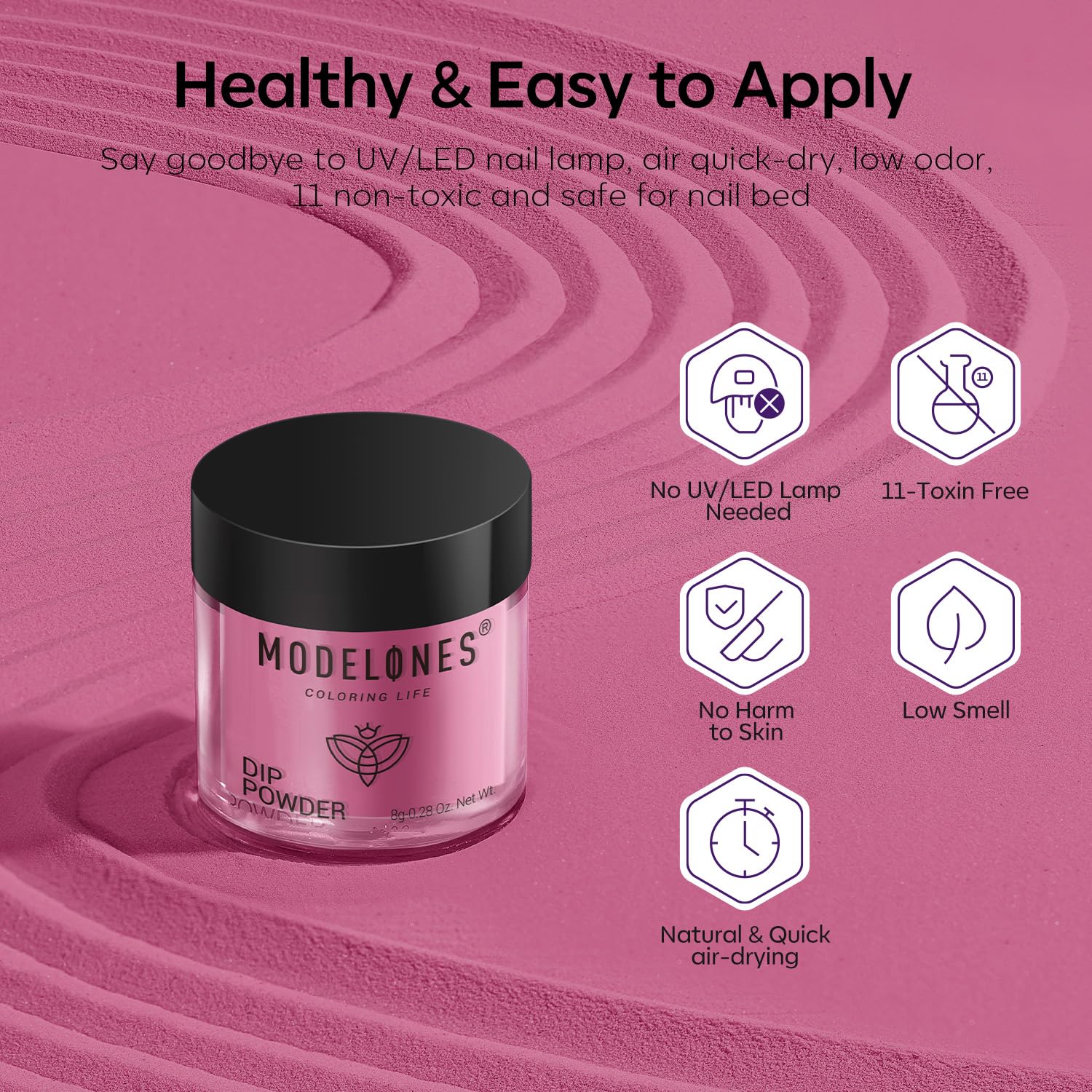 - NO LAMP NEEDED: With this dip nail kit, you can say goodbye to constantly reapplying nail polish. No lamp is required! Enjoy a hassle-free nail dip powder process. The dip powder liquid set air-dries quickly, leaving you with a gel-like smooth finish. Avoid direct skin contact during the process
