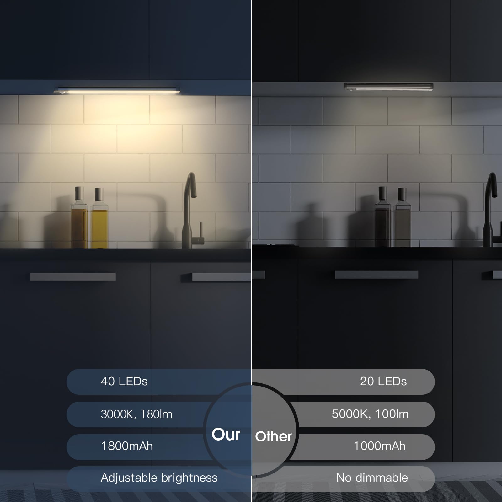 ✔️63 LED: The under cabinet lighting includes 63 LED beads which emit 180 lumens of soft, diffused white light. Provide sufficient light to illuminate every dark corner.