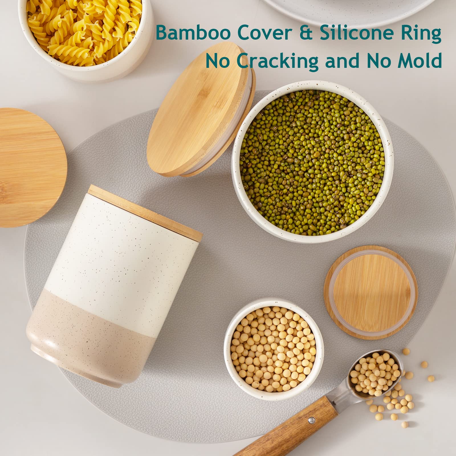 - 【Durable & Stylish Material】Made from high-quality terracotta ceramic, these canisters are more durable than plastic or glass. The smooth, glazed surface is easy to clean and dishwasher-safe (wooden lids are hand wash only)