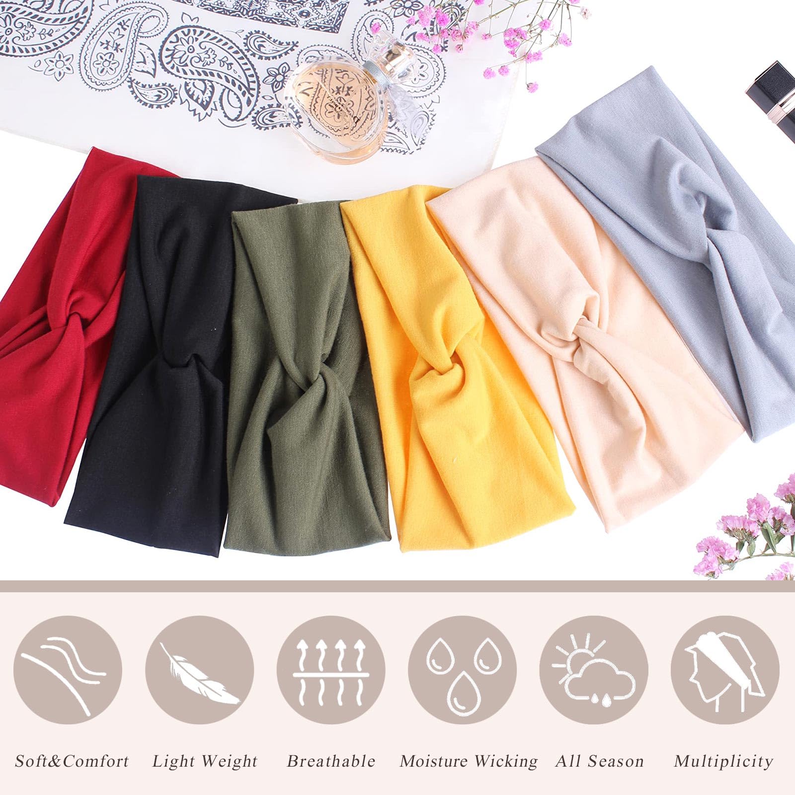 XTREND 6 Pcs Women's Headbands Twisted Cross Elastic Head Band Yoga Workout Head Non-Slip Sweat Soft Headbands Solid Color Simple Versatile Hair Accessory Hairbands