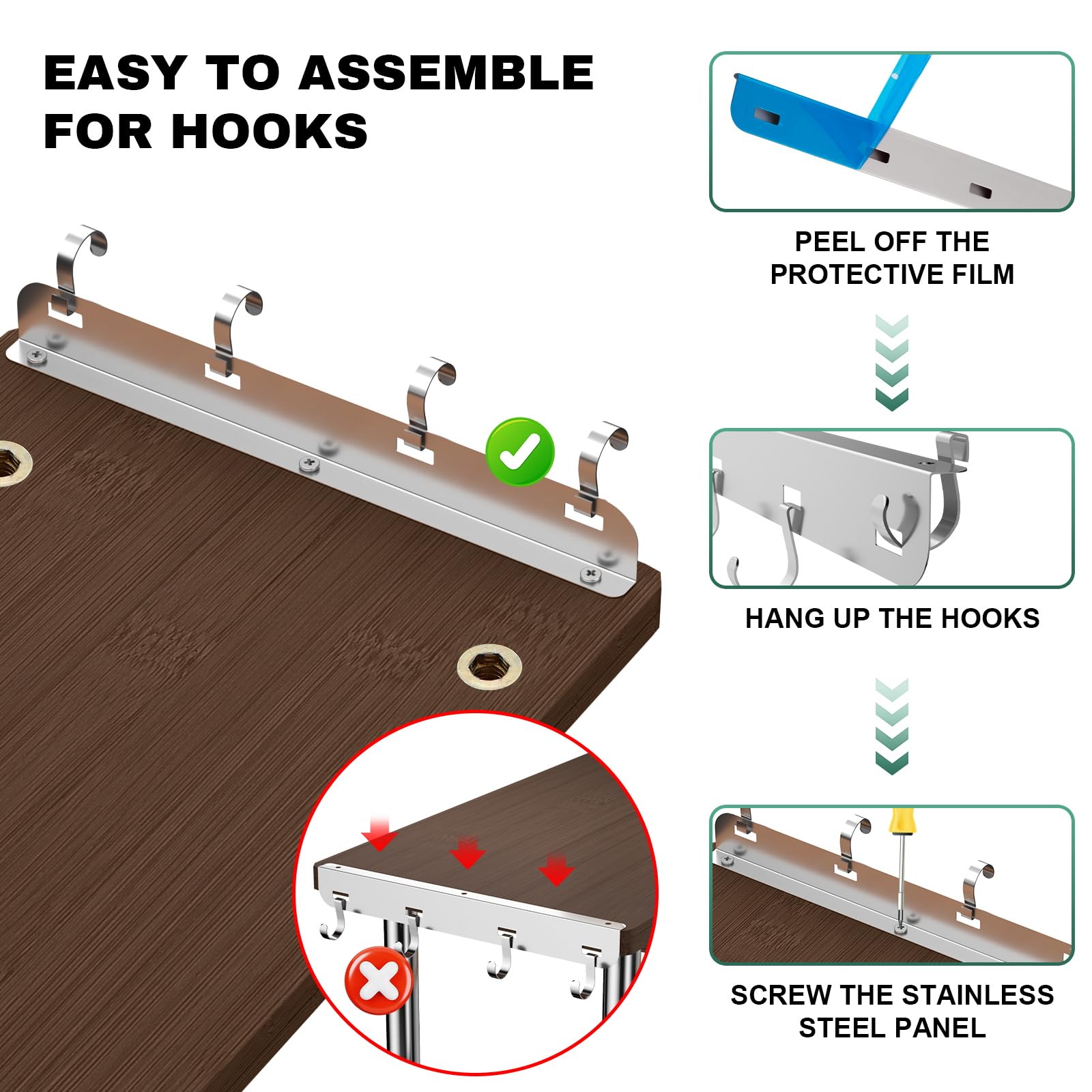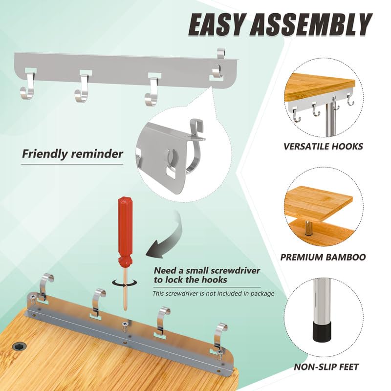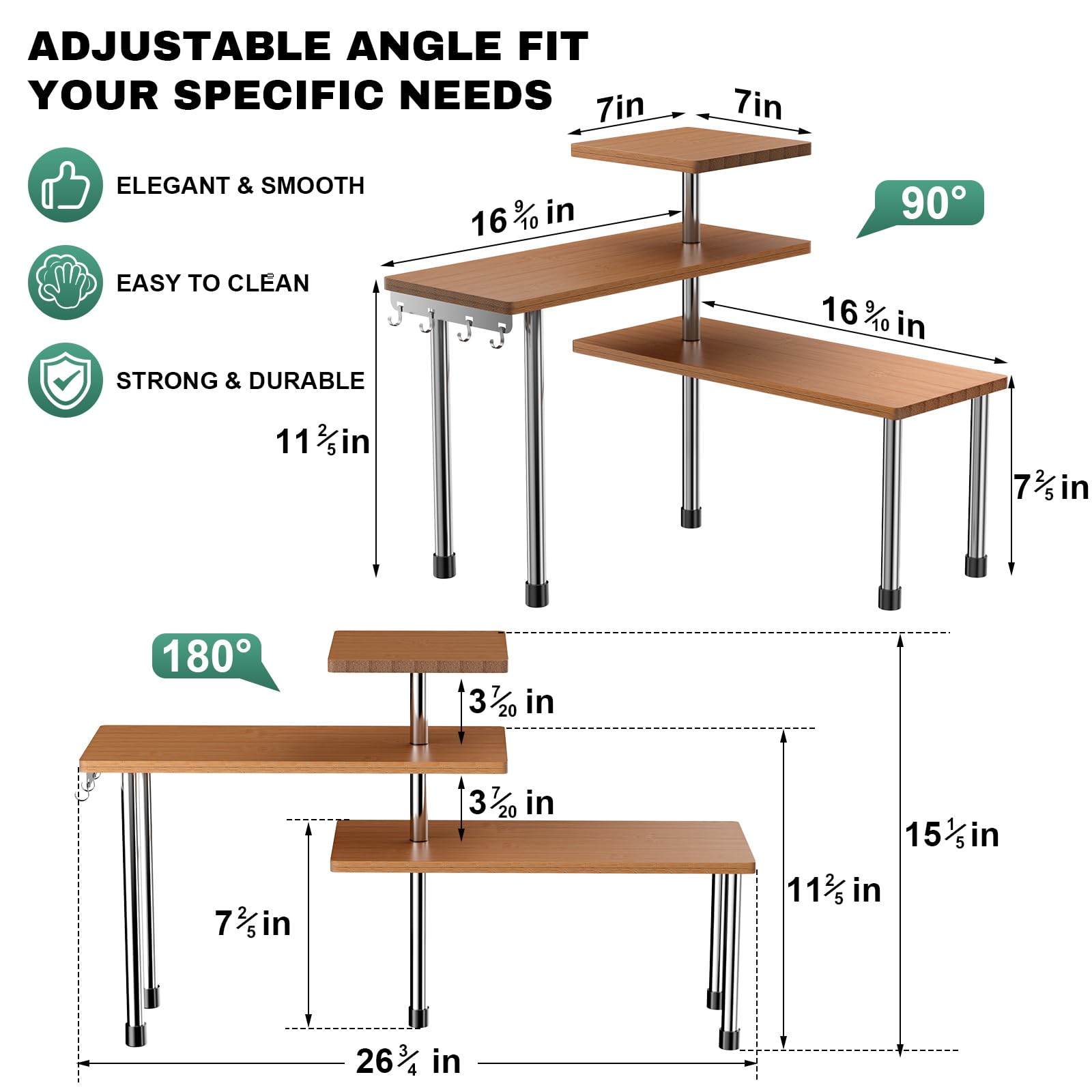 - Maximize Limited Space: This counter shelf is your solution for saving space. Its adjustable 3-tier shelf design allows customization to suit your needs, making the most of even the tightest spaces. Additionally, it's equipped with 4 convenient metal hooks for efficient item organization within easy reach