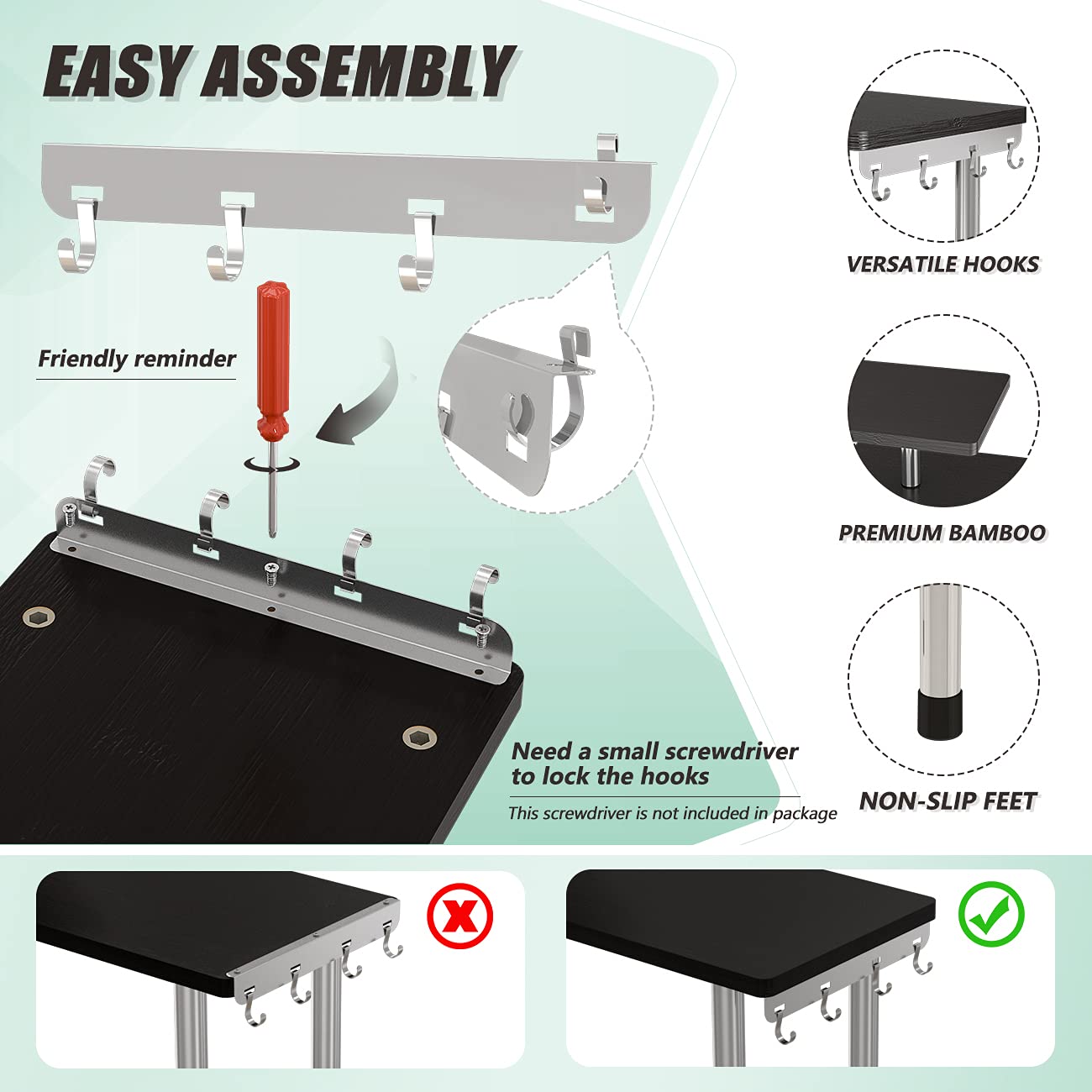 - Strong Stability: Rest assured in the stability of countertop shelf with its robust construction featuring 5 stainless steel legs. The durable bamboo shelves are not only reliable but also waterproof. For added protection, we've included bottom leg covers to prevent countertop scratches